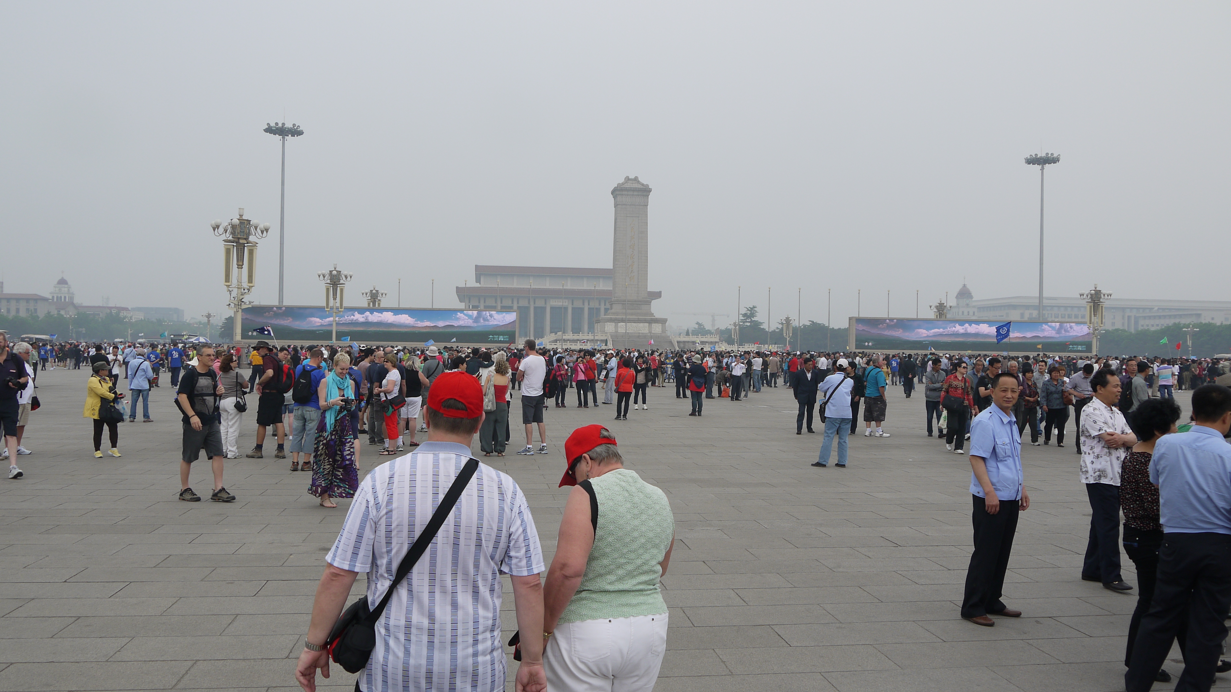 Our China tour got off to a delayed start. Our plane to Shanghai was late to start with, and then we were delayed at Shanghai airport for some hours while our connecting flight to Beijing circled around a storm in the South China Sea. Our tour guide didn’t meet us until we got into the Chinese capital, so for a while there we had no idea what was going on!