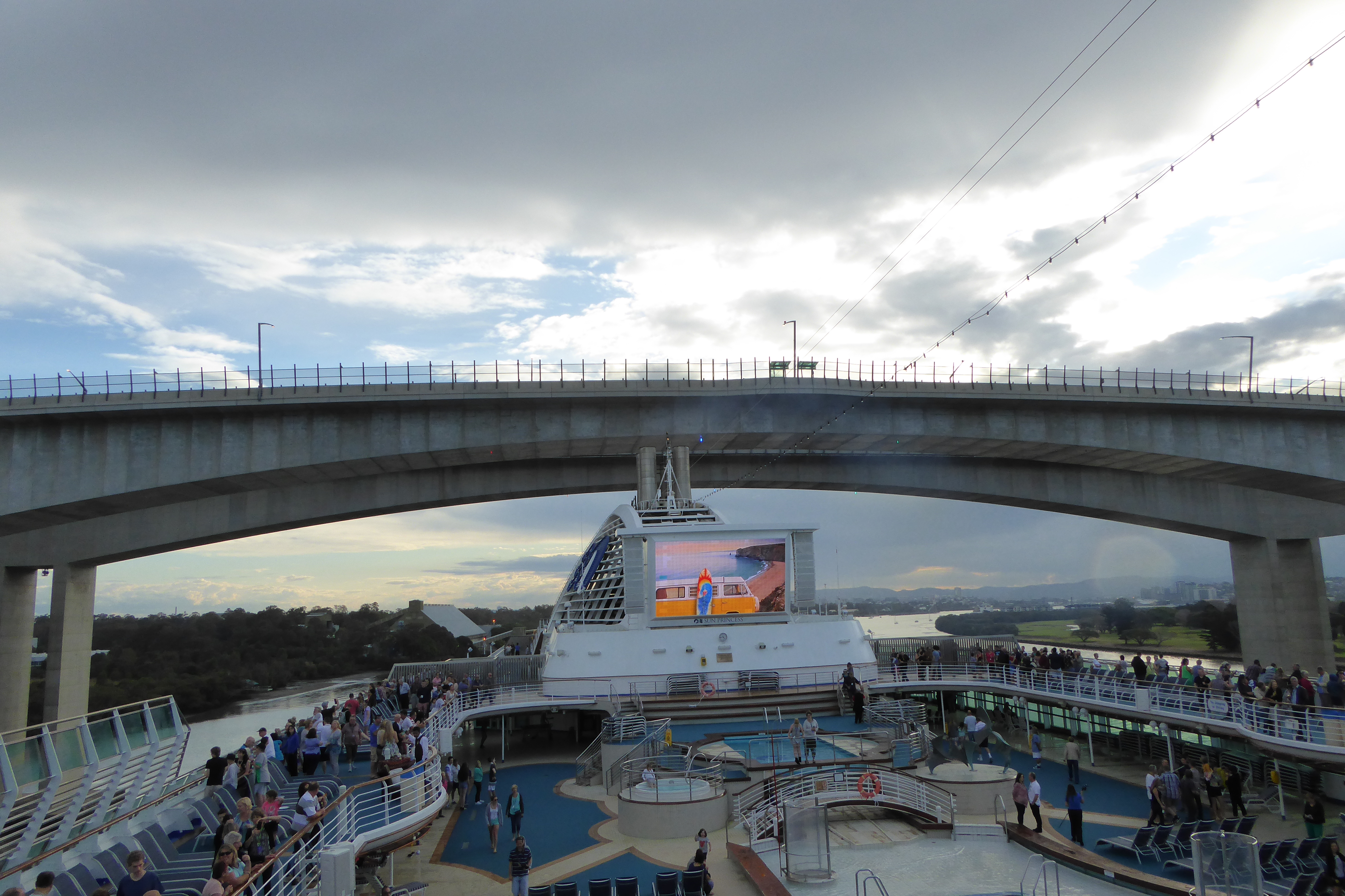 As I type, the Princess Cruises’ Sun Princess is turning around in the Brisbane River, and I am typing frantically, to get this written while we still have cellphone coverage.