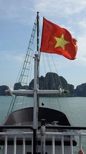 We’ve just spent a couple of days cruising in Vietnam’s Halong Bay, on board a boat with about a dozen cabins and a mixed group of passengers from the four corners of the earth.