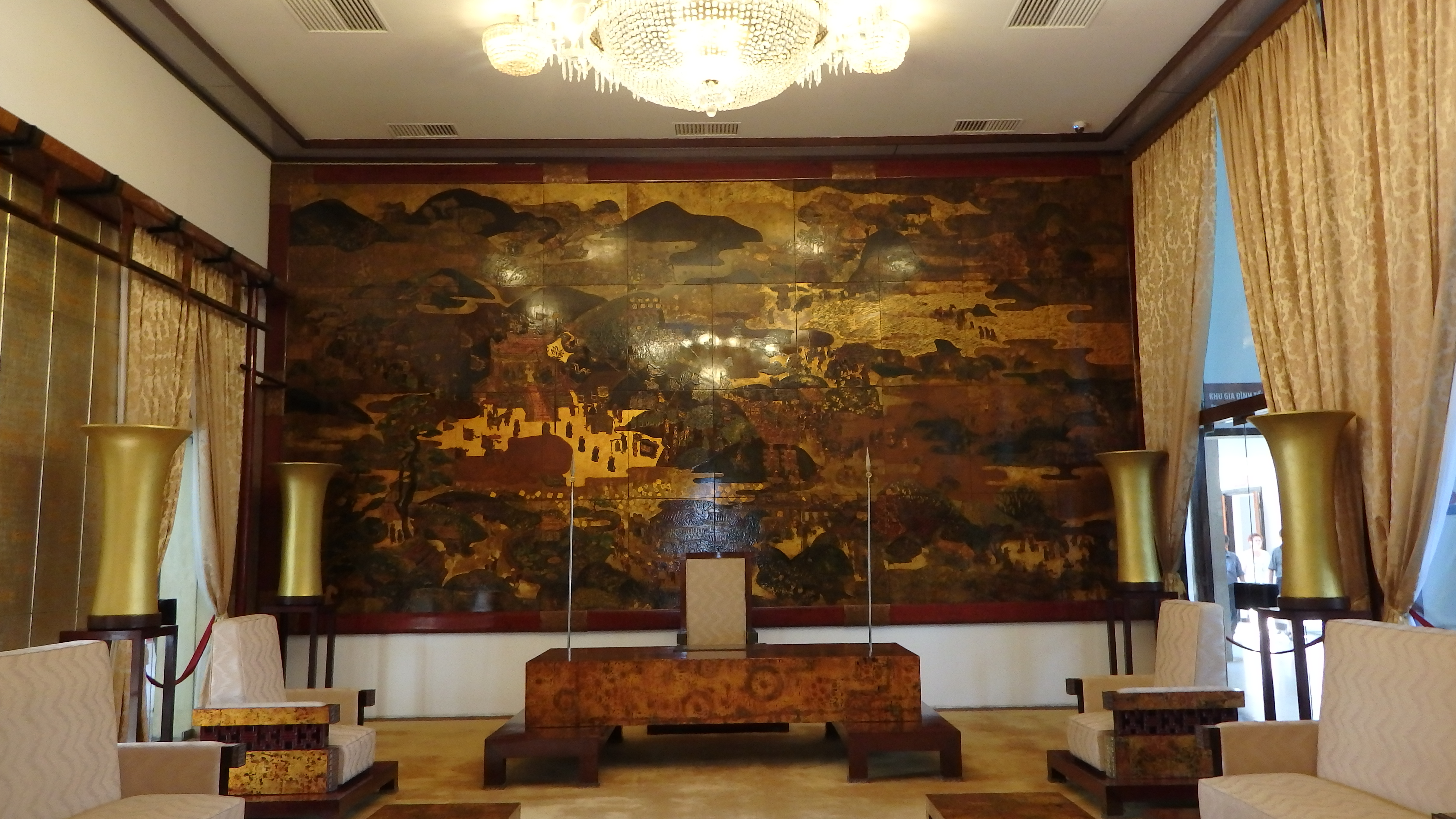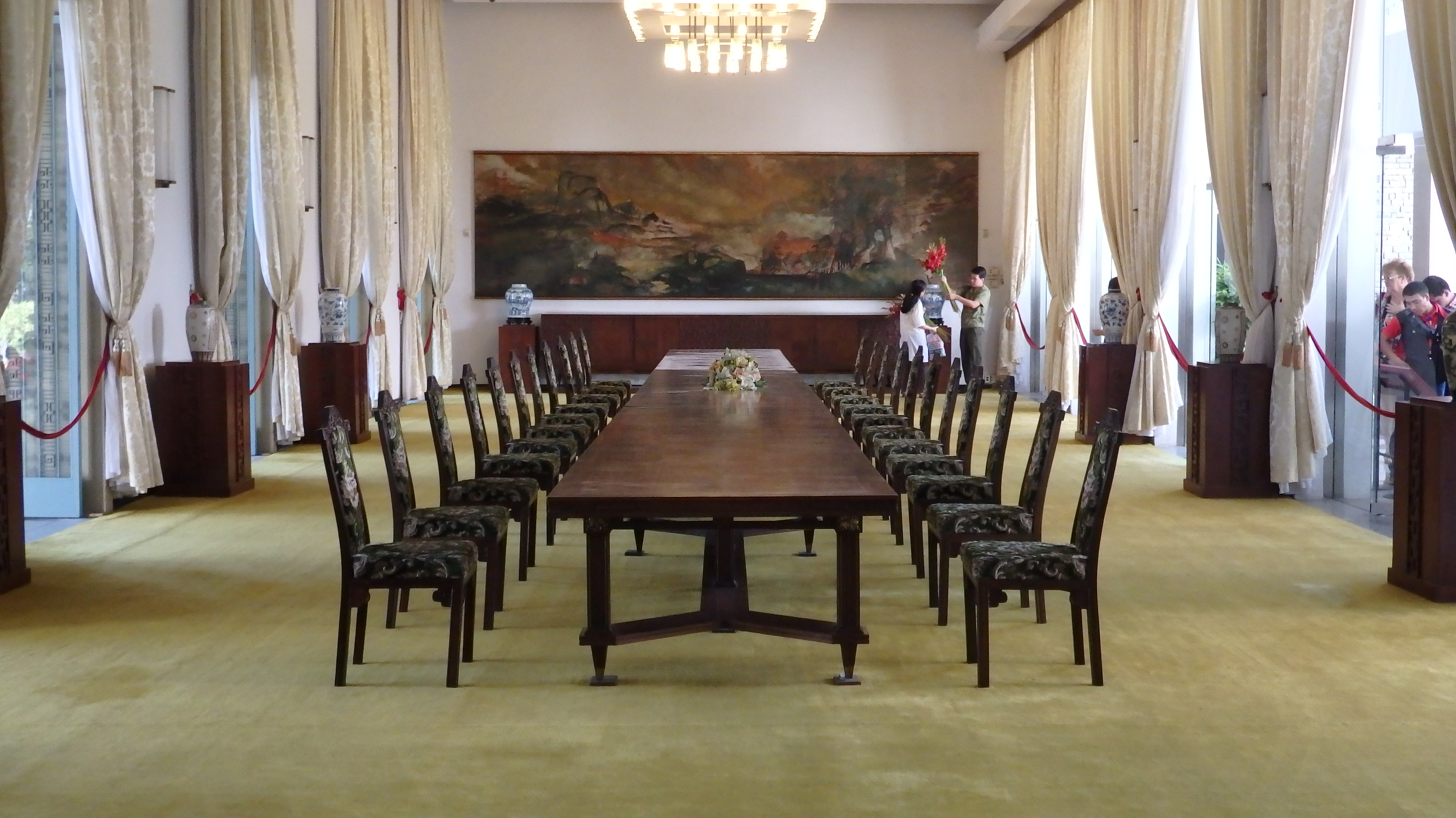 It’s constructed in a typical mid-20th century modernist style – but its colonnades are deliberately shaped to evoke bamboo, and its feng shui is supposed to place it on the head of a dragon – hence yet another name for the palace, the Dragon’s Head Palace.
