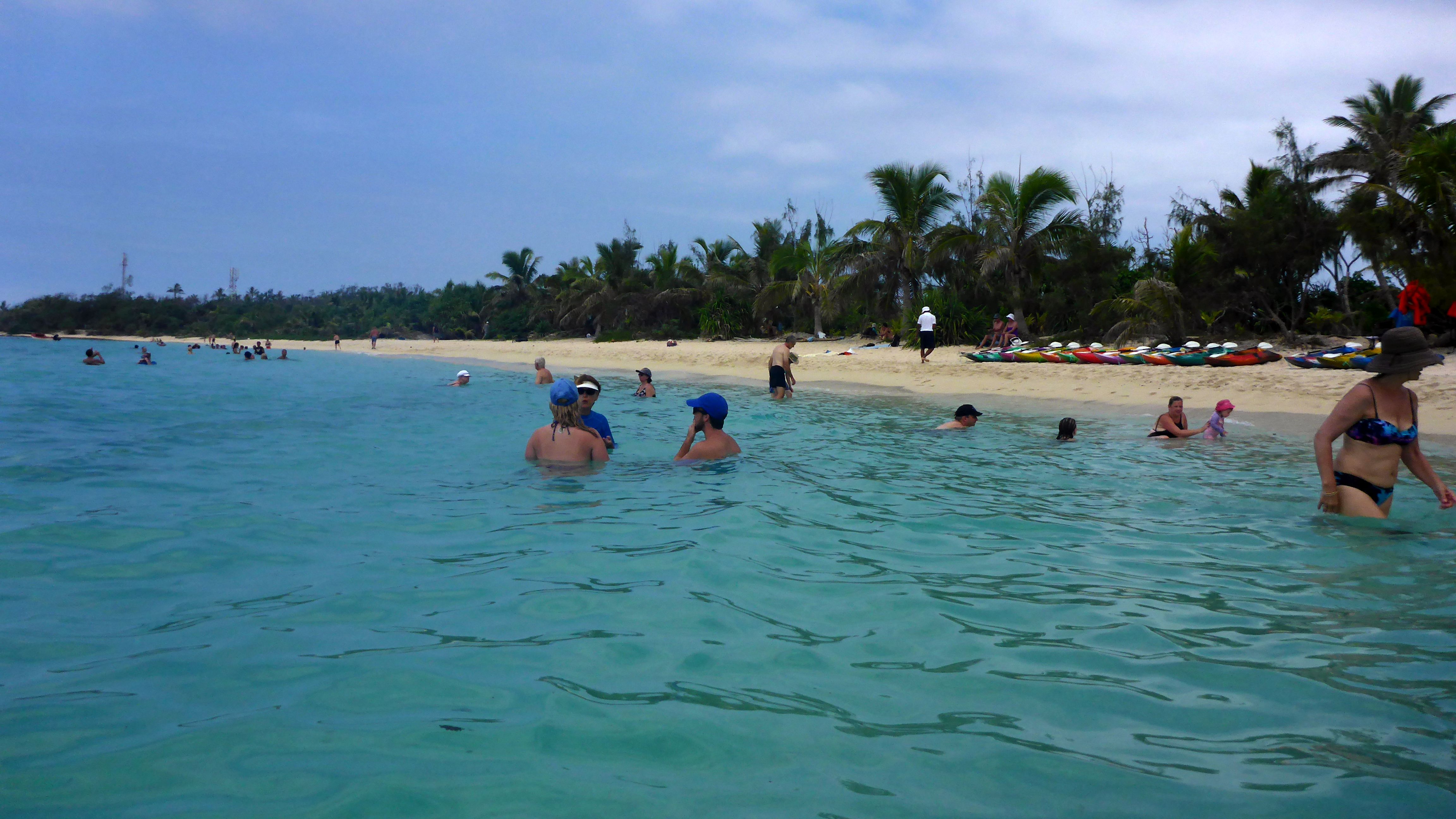 No-one lives on the island itself – but every year, about 65,000 guests a year go ashore by ship’s boats for days of swimming, beachcombing, snorkelling, and buying shells, fresh fruits, carvings and necklaces at a market set up by the Aneityum people who come across on “ship days.”