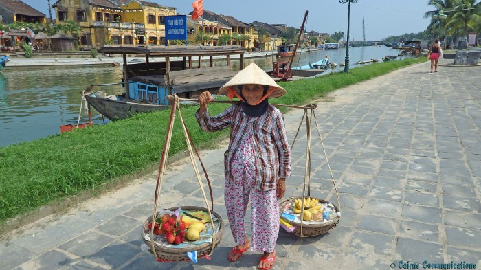 The final pic in our series is of a local woman carrying fruits for sale in baskets, or Thúng, on a caryying pole, while wearing the Nón Lá or traditional conical hat.
