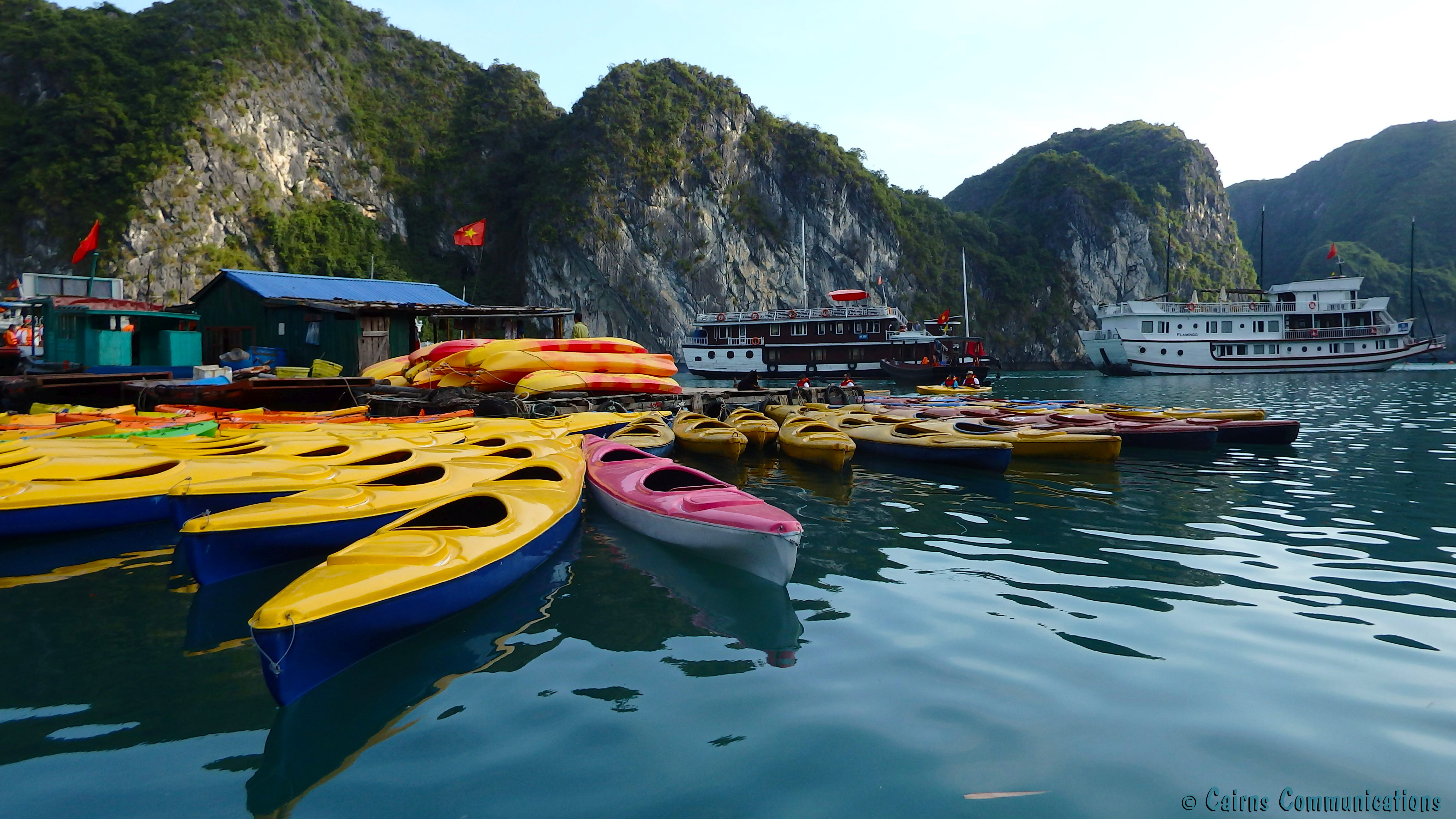 Our first in this series comes from Halong Bay – and it’s a flotilla of kayaks, just waiting for tourists to go paddling.