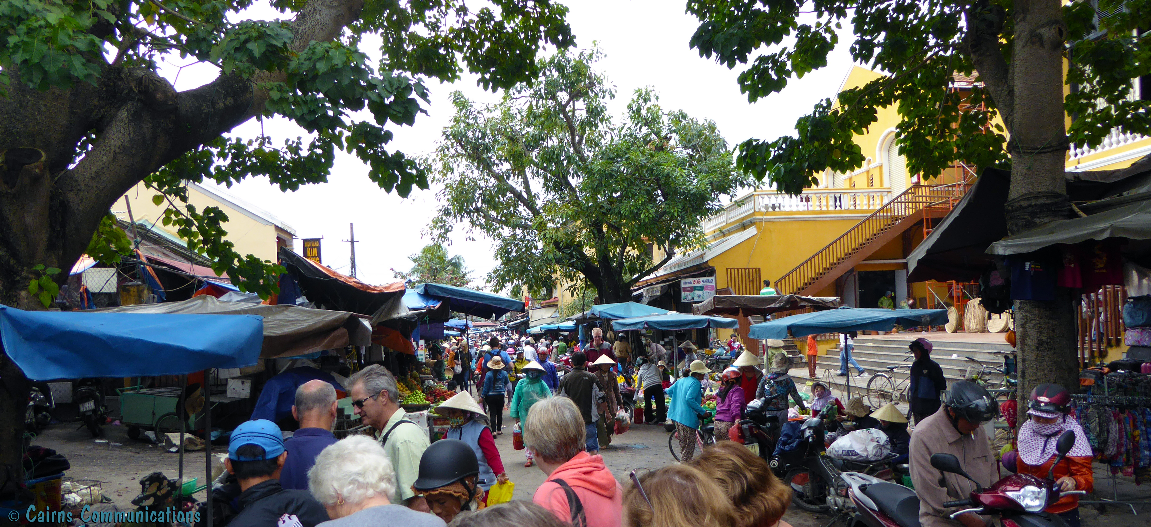 Here you can see the heads of a group of Aussie tourists, as we get set to head into the Hoi An markets.