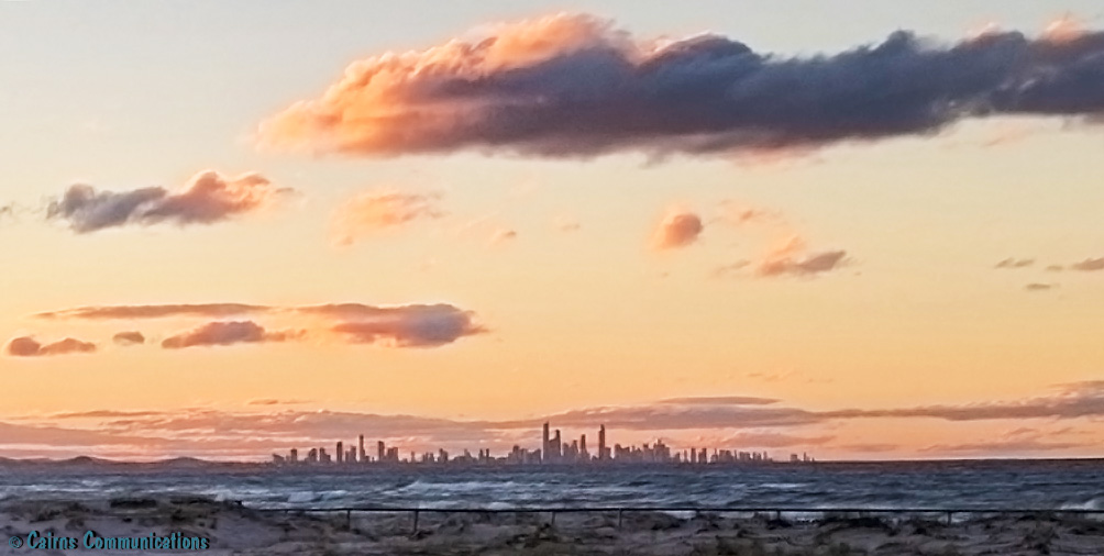 We were on the southern Gold Coast – opposite a Worldmark time-share we part-own, and were looking north to Broadbeach and Surfers Paradise.