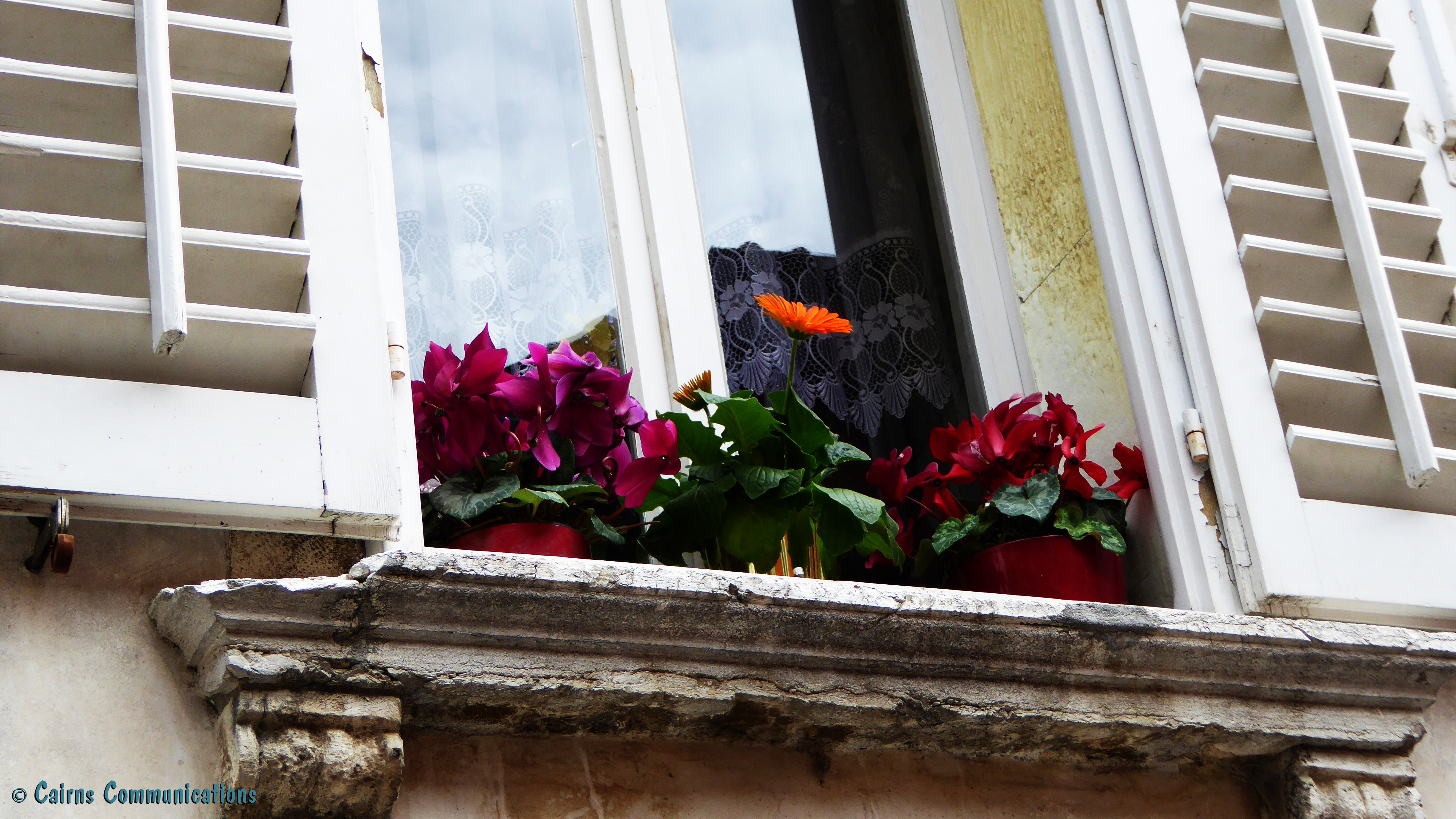 That’s how I see the hanging baskets that (sometimes) adorn my back deck (when they haven’t died!) – and I suspect that’s how an anonymous apartment-dweller in Koper, Slovenia sees their window-sill garden.