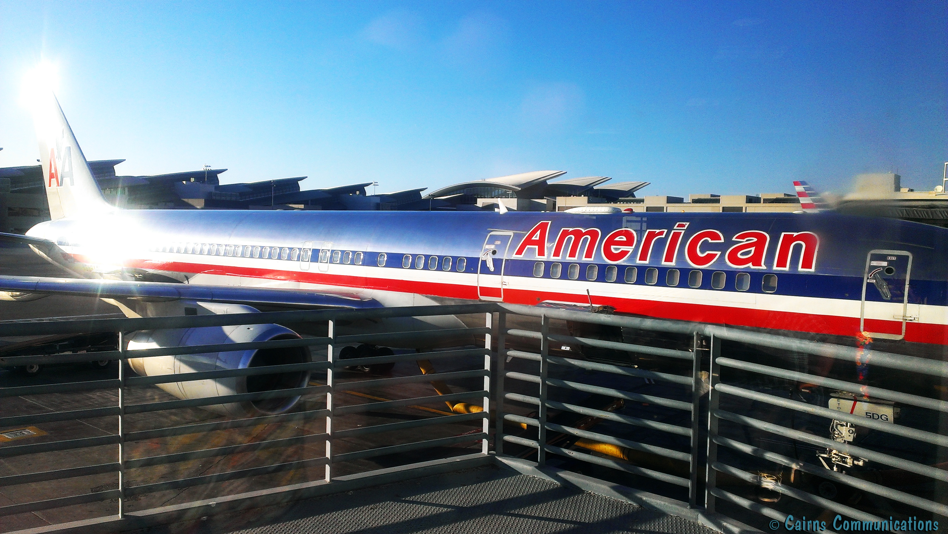 American Airlines has a fleet of nearly a thousand planes .. and a mix of liveries. The most famous is this – the silver fuselage with red-white-and-blue striping and the AA-separated-by-an-eagle logo on the tail.