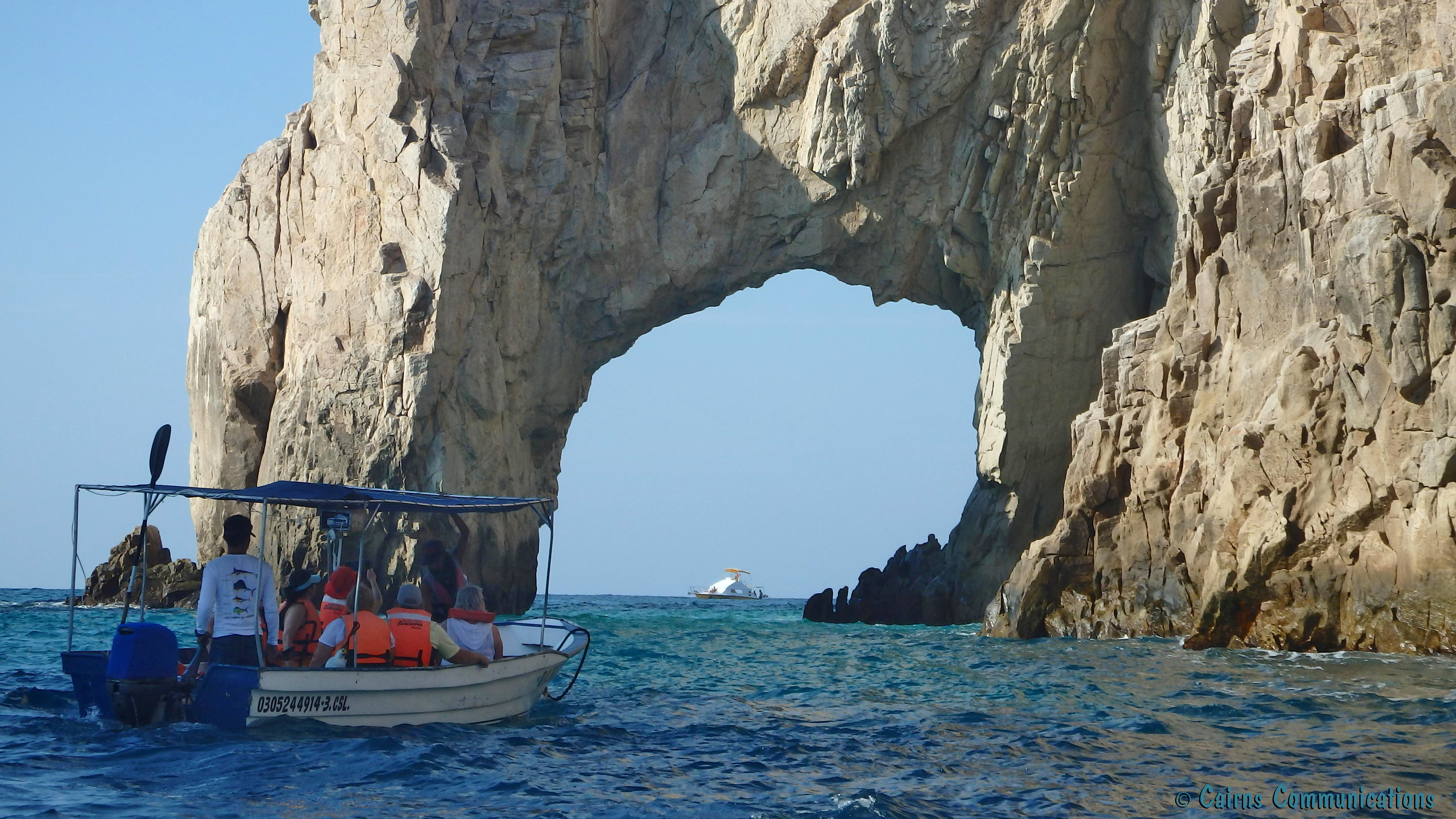 Whereas the boat in the foreground is in the Gulf of California – and the arch marks the end of the Baja Peninsula – or Lands End.