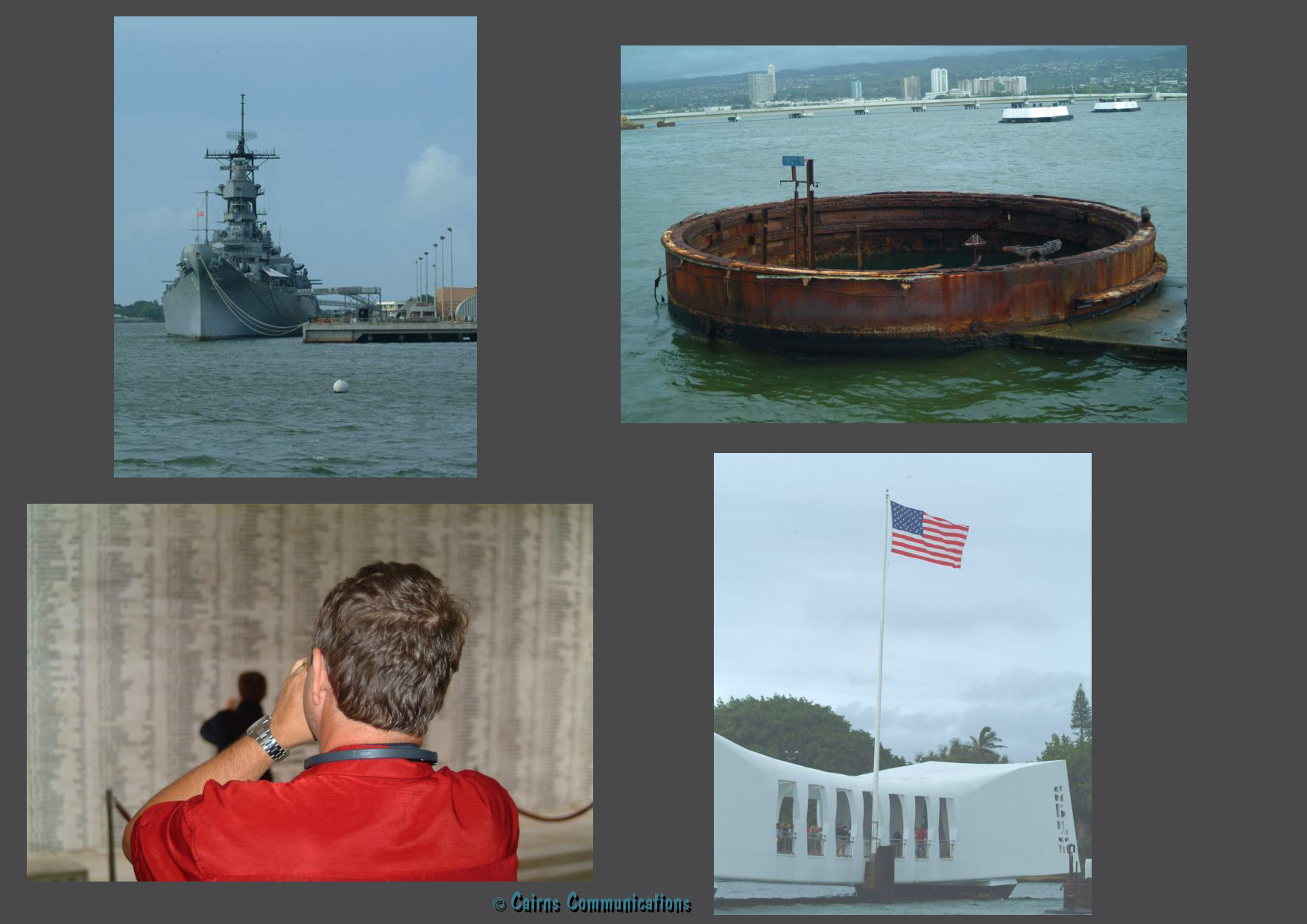 We were there on a grey December day, and I cannot described the sorrow you feel as you pause, looking across at the watery grave that is the remnants of the USS Arizona.