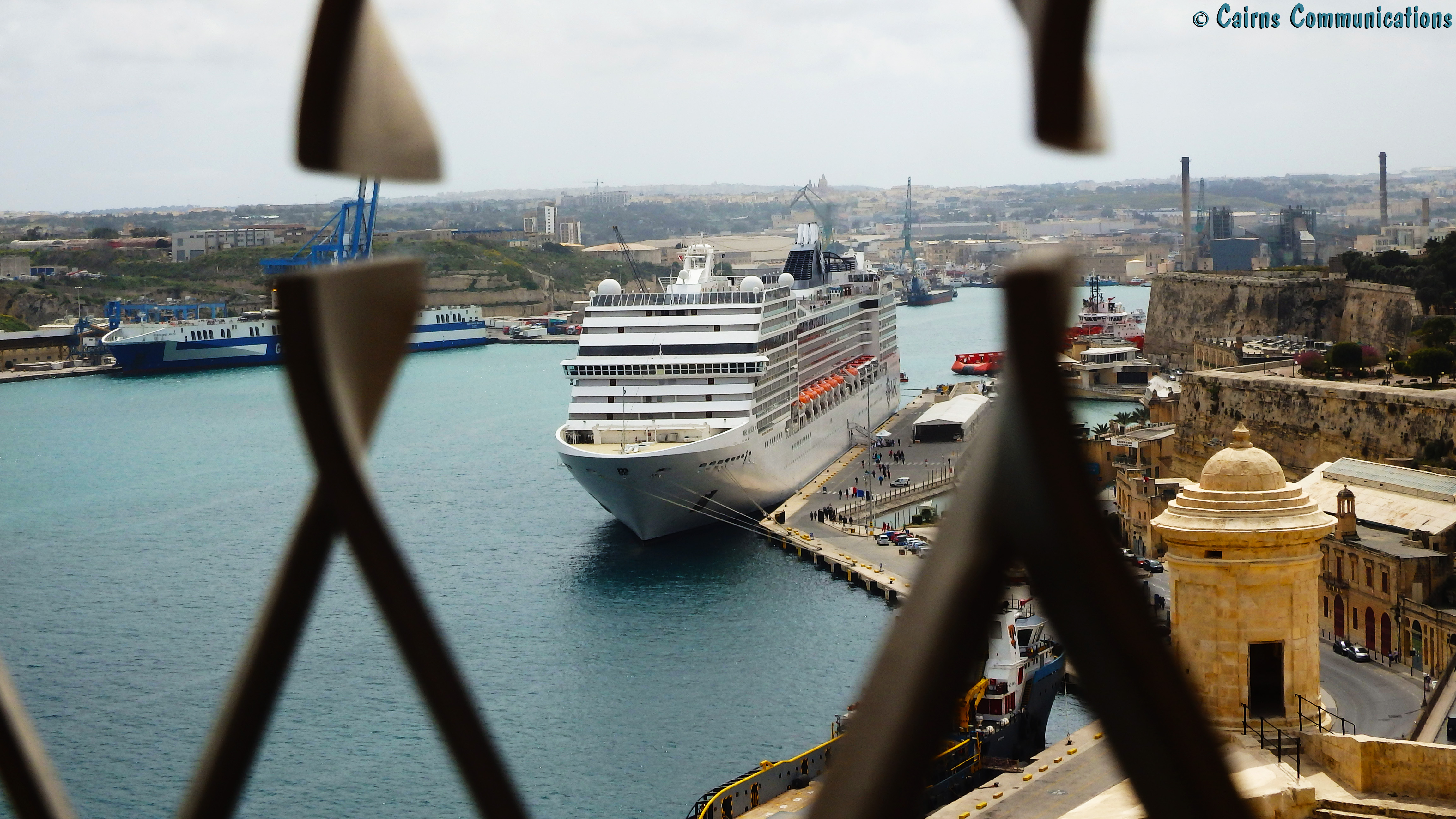 She had tied up at the wharves in Valletta, and we had caught a taxi up to the town, which is high above the passenger terminal protected by walls and bastions and curtains – what are called the Floriana lines.