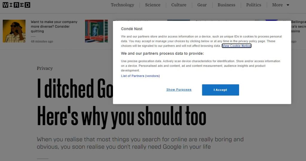 Of course, the amusing part is that to access that article, you need to allow Wired’s parent company, Conde Nast, to keep records of your visit.