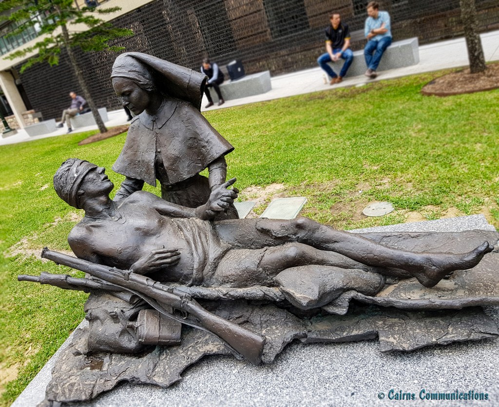 The World War Two memorial is visually quite interesting – one statue depicts a nurse treating an injured soldier and is opposite another statue of New Guinea natives guiding Australian soldiers through the jungles of the Open Stanley Ranges.