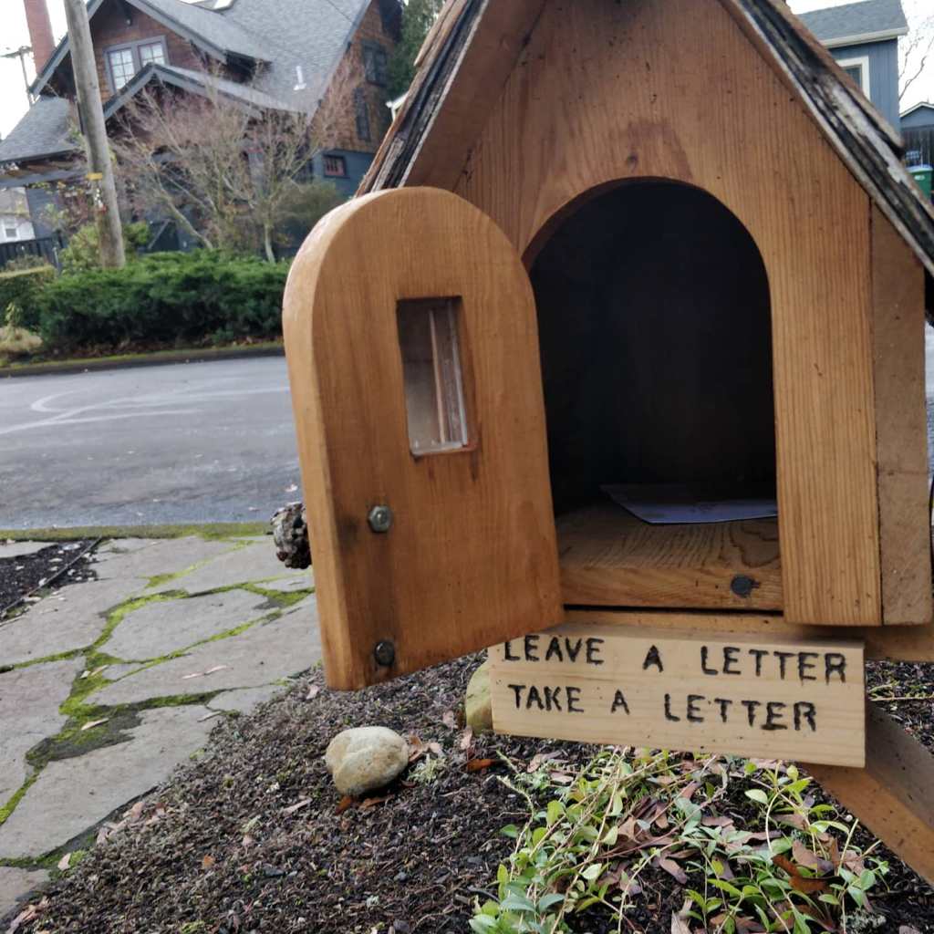 It is a ‘letter library’ – where you write a letter and someone else takes it before (or while) leaving a letter of their own.